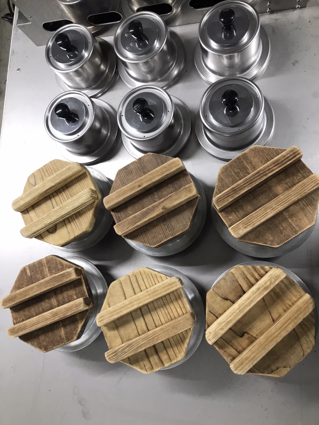 | 備 考 | 付属品:釜、金蓋、木蓋 各6個※金蓋6個の内、 2個は内側のパッキンがありません ※同型の商品があと3台ございます。詳しくはお問い合わせください。 |