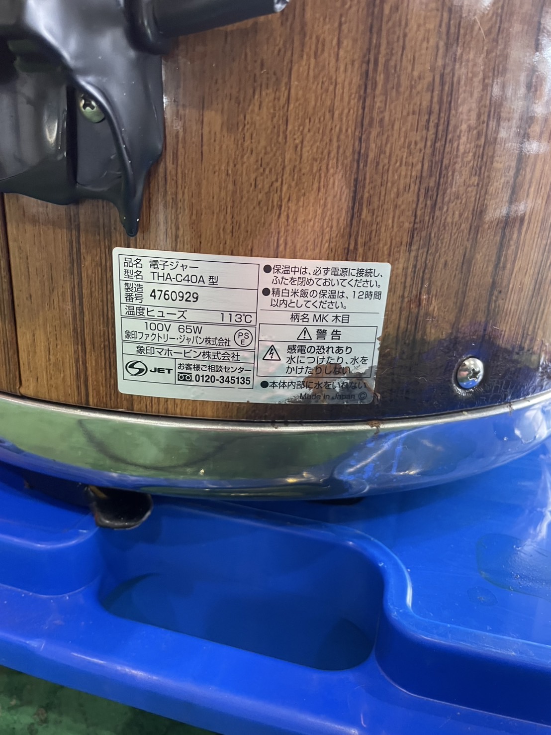 (売約済み)電子保温ジャー 約2.2升 象印 THA-C40A型 中古品 AR-6303 お問合せ番号 AR-6303 通 称 電子ジャー 名 称 保温ジャー 電子ジャー メーカー 象印 型 式 THA-C40A型 電 源 100V 備 考 スイッチ側の配線に傷みが有ります。 ※参考資料はこちら 状 態 中古品 納 期 約2週間 運送・据付費 別途、お問い合わせください 整備内容 掃除含む 保障期間 初期動作のみ 商品到着後2週間以内 倉 庫 弊社本社倉庫 下 見 可能 価 格 SOLDOUT ※動作確認動画はこちら 上棚 約800×300×250 中古品 AR-7194 電子レンジ MAXZEN(マックスゼン) JM18BGZ01 ※60Hz仕様 中古品 AR-7107 ガス炊飯釜 リンナイ RR-30S1 中古品 AR-7109 5口ガステーブル(作業台付き) OZAKI OZ120-60K 中古品 AR-6896 温蔵ショーケース タイジ OSー800N 中古品 AR-7080 グリドル マルゼン 中古品 AR-7039 調理台 約1500×750×790 中古品 AR-6893 ラックカート18段 マルゼン 495×690×1700 中古品 AR-6895