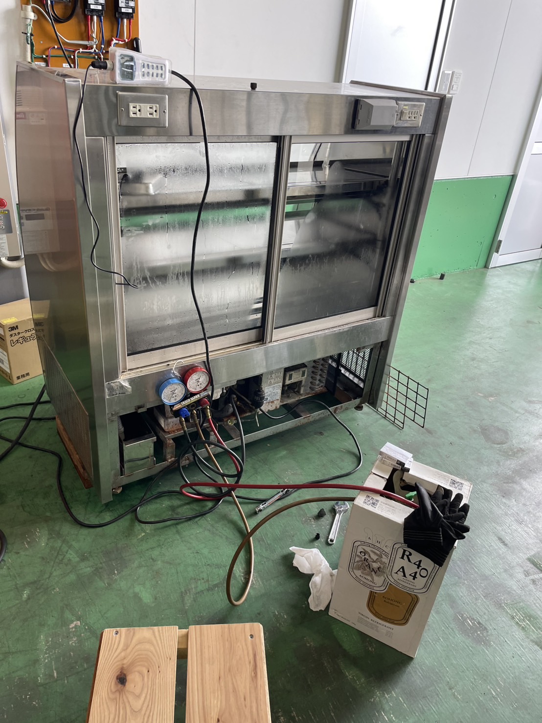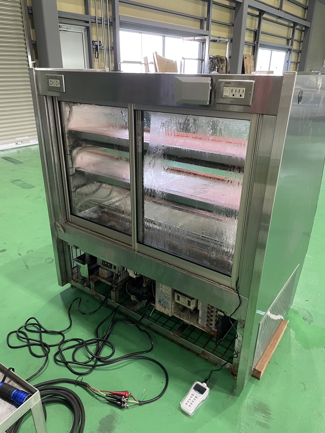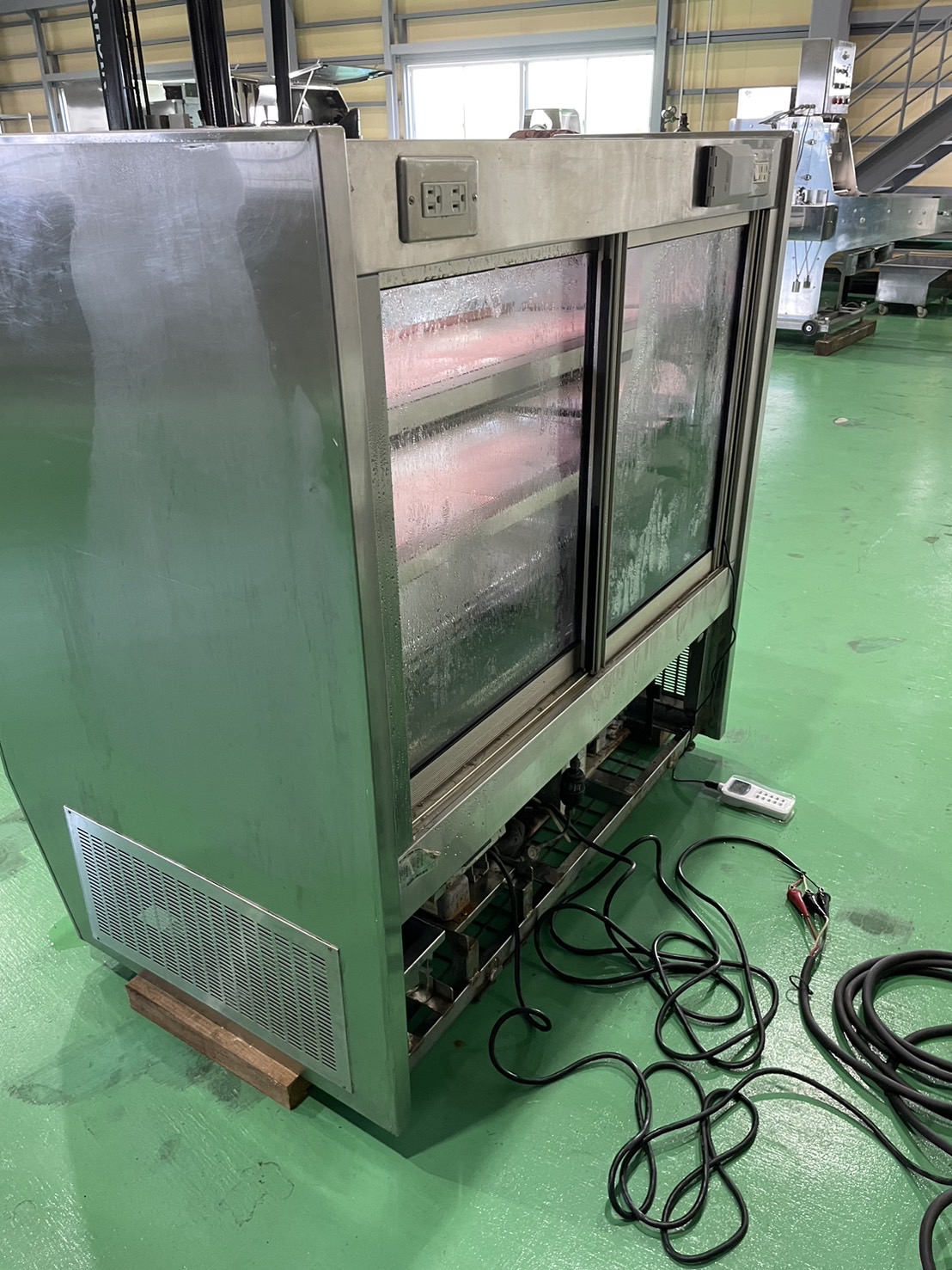| 備 考 | ※フロン:R404a ※冷凍・冷蔵仕様のショーケースですが、冷凍温度までは冷えません。冷蔵ショーケースとしては問題なく機能します。 |