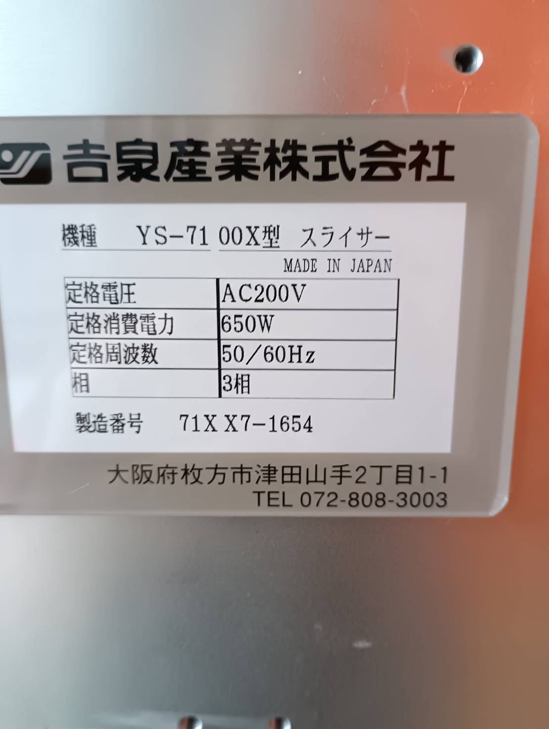 | 通 称 | フードスライサーコンベアー付 |