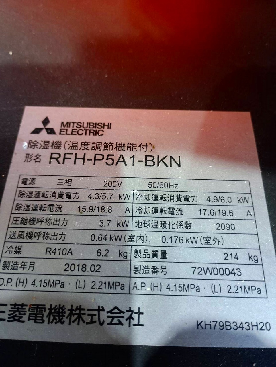 | 名 称 | 産業用除湿機 |