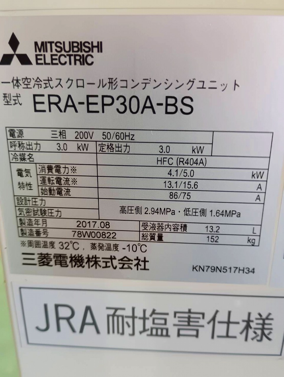 | メーカー | 本体:ホシザキ 外機:三菱 |