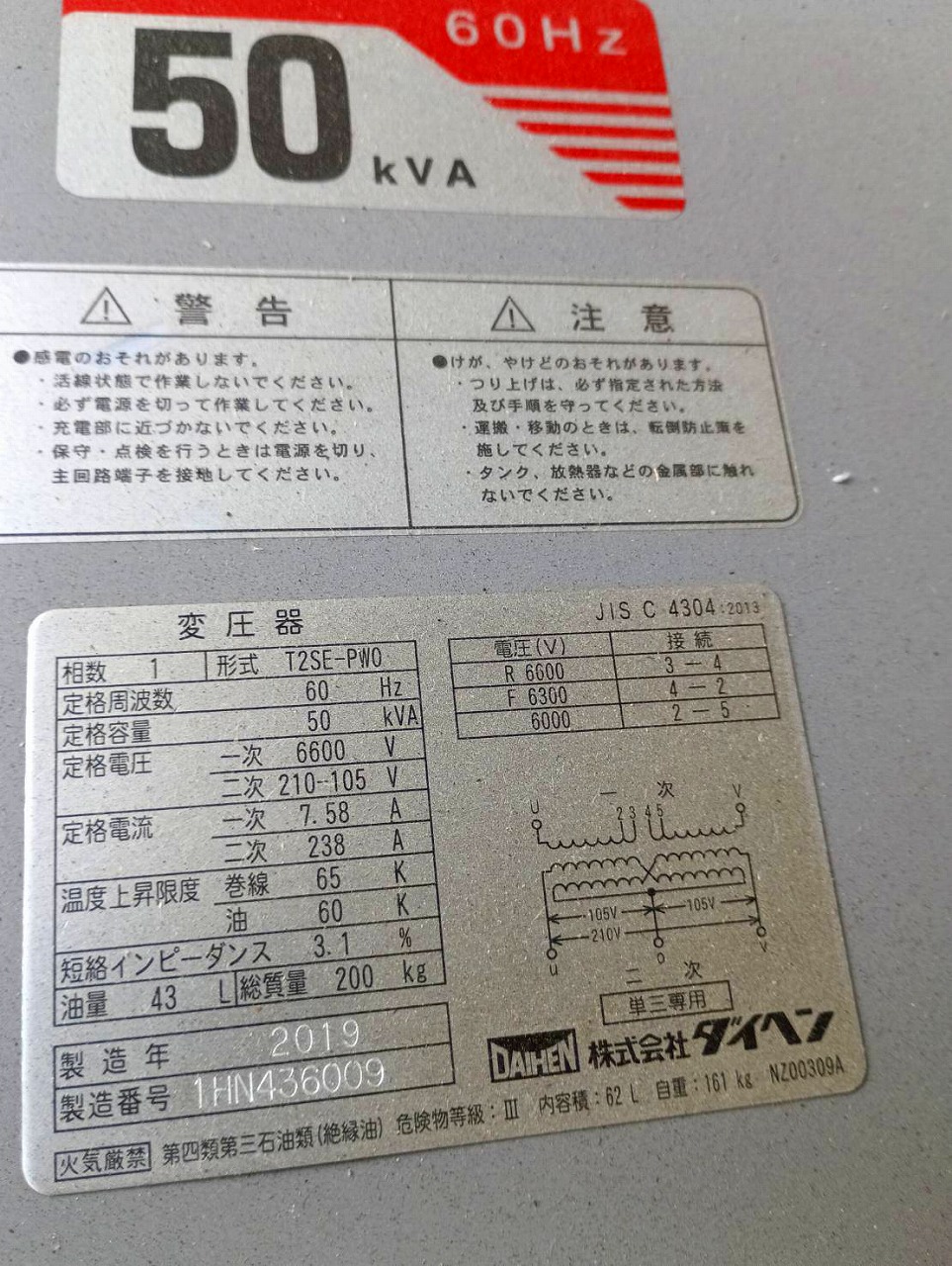 | 電 源 | 三相 300kVA 60Hz / 単相 50kVA 60Hz |