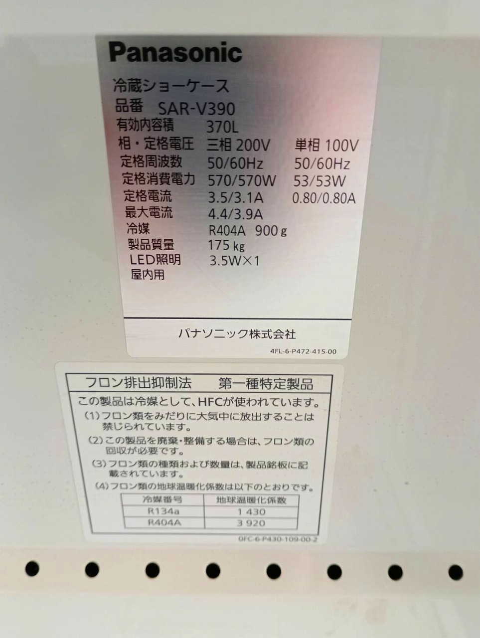 | 名 称 | 冷蔵ショーケース |