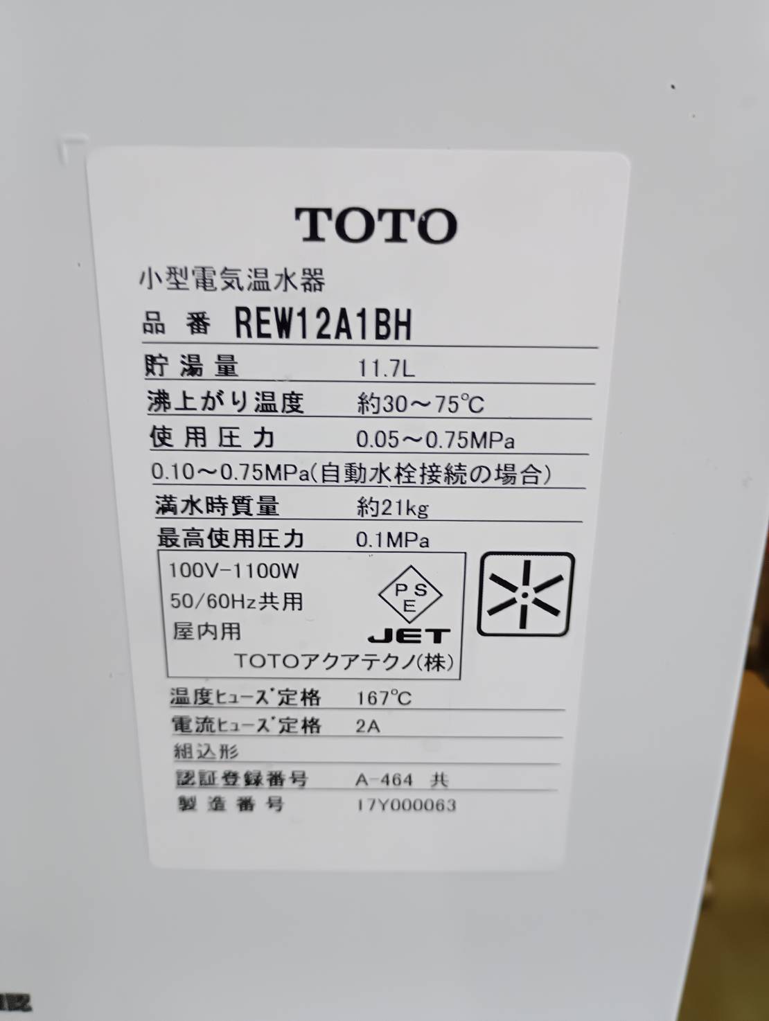 | 通 称 | 小型電気温水器 |