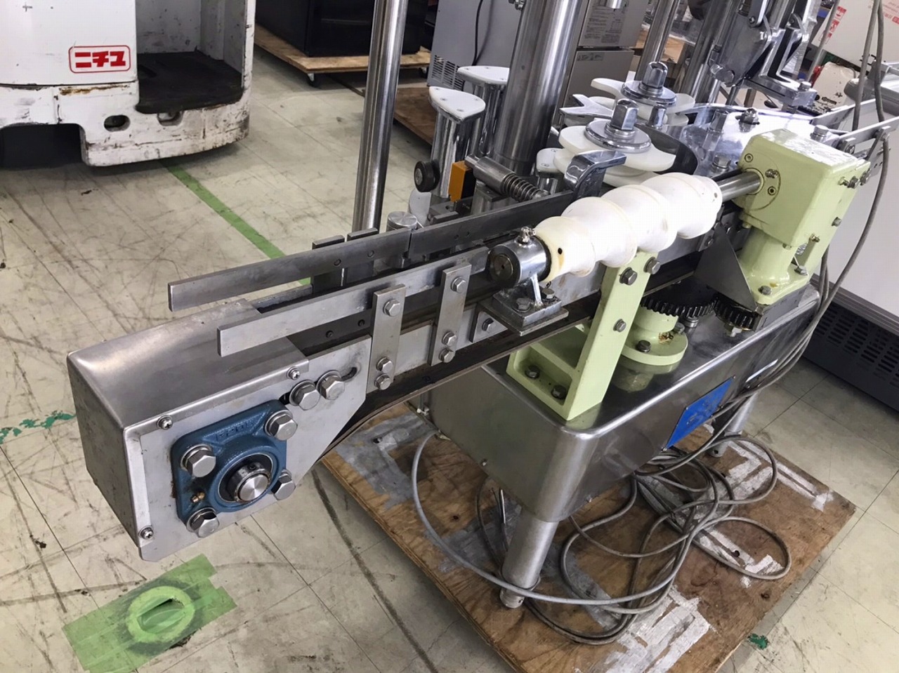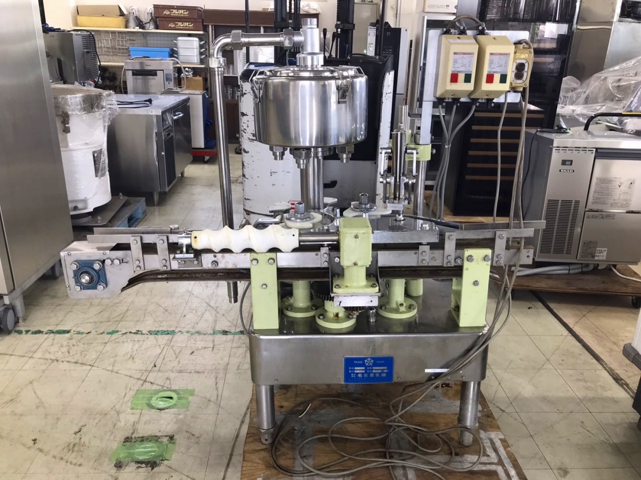 | 備 考 | ※キャッパー(完封機)あり以下ネットより抜粋 ※能力: 2000-2300本/時(200mlサイズ) ※打栓キャッパー付※真空充填方式 ※90ml専用機および180-200ml兼用機 |