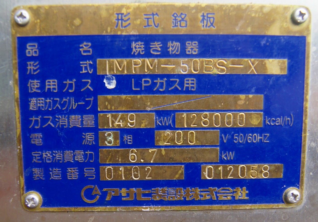 | 通 称 | 焼き物器 業務用オーブン |